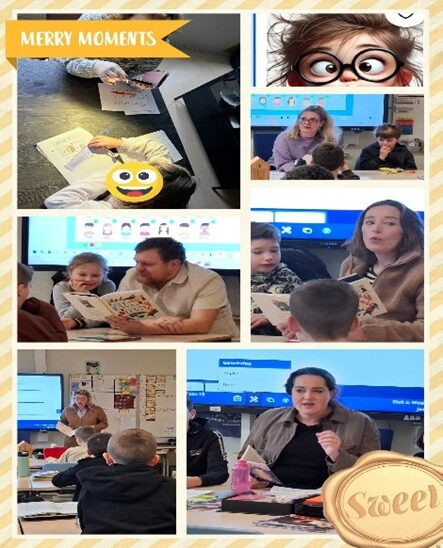 Omdat (voor)lezen zo belangrijk is doen we als school altijd mee aan de nationale voorleesdagen. Heel veel vaders en moeders hebben tijd vrijgemaakt om langs te komen om voor te lezen. Er zaten spannende verhalen bij over een scheldfabriek, verhalen die gewoon “een broodje aap” waren, maar ook super grappige verhalen. Er zat echt een hoop voorleestalent tussen al deze ouders! De kinderen (en juffen) hebben genoten.